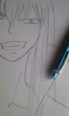 練習題材スクアーロ 水彩色鉛筆の練習をしようと思って、この前授業で余った紙に描いてる。半分に切った画用紙の失敗した紙だからサイズおかしいけど最後に切るからよし。でもこれ頭の上すこし小さくしちゃったよ…紙があと数aあれば…>"<スッ君の歯が好きなんですが上手く再現できません。ギッチギッチ