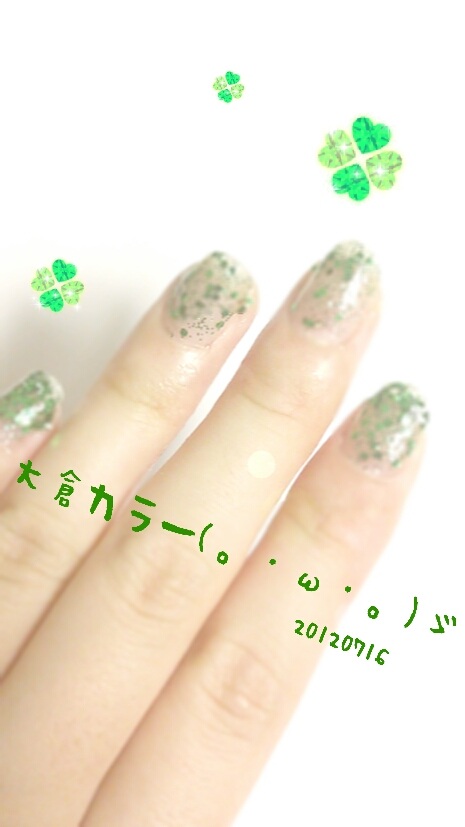 キュアたーくん!! 物足りないけど久々に塗れたからまあいいや…そのうちアレンジしよう。ところで緑ですよ大倉ですようっへっへ←もうそれだけでテンションあがりますww爪伸ばしてもっとグリングリンにするかwwww大倉効果ですばるんるん!